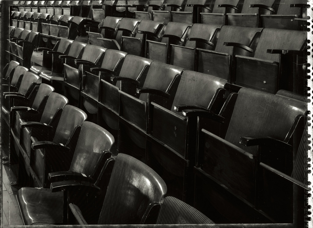 La fotografia che ci hai proposto è bellissima, il pattern delle sedie è ripreso con un'accuratezza maniacale, si vede che hai studiato attentamente l'inquadratura, mi piace che le linee di fuga convergano verso l'angolo sinistro in alto. Il BN è pregevole, quasi plastico..