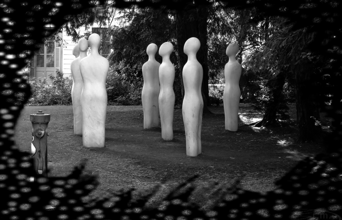 La piccola folla di marmo s'armonizza nel contesto anche se la presa d'acqua è abbastanza fastidiosa. Immagino non potessi spostarla! Ok!