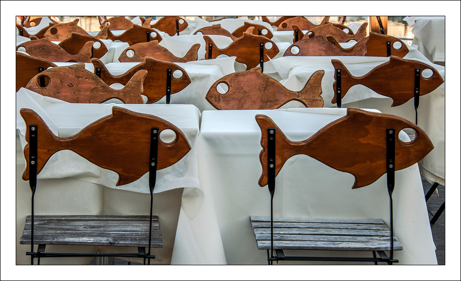 Molto bella e divertente. Le sedute ancorano al contesto ma anche azzardando un taglio sotto si sperimenta un figurativo che intriga. Un metaforico galleggiare di pesci che nuotano tra le onde. Piacevole  |