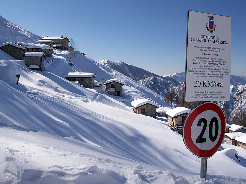 Sembra una non strada con tanto di divieto, ma mancano i trasgressori. Bella la resa della neve ed il Presepe di casette. Complimenti Elis!