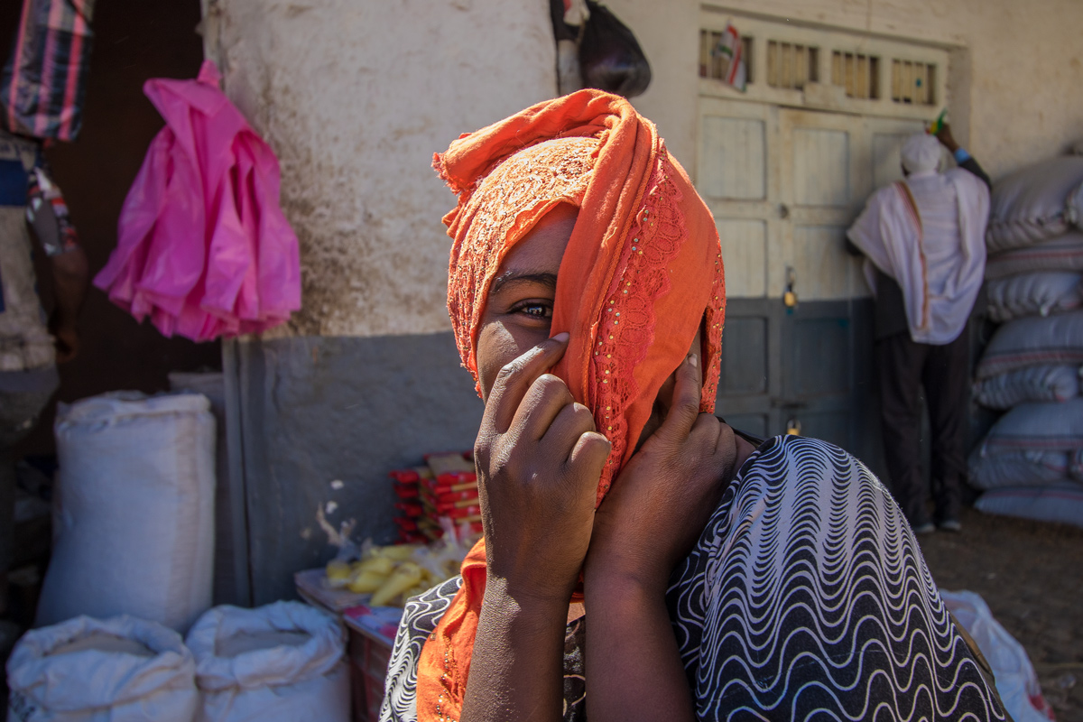 Un solo occhio visibile ma che parla,sorride e racconta... il viso coperto sembra più per gioco che per vergogna o reticenza al farsi fotografare, quindi vedo sintonia tra voi,almeno in questo attimo di vita spensierata che hai ripreso.Colori vivi e brillanti che mettono allegria,la luce forse non era delle migliori,crea ombre un po' importanti,e forse si poteva stringere un pochino l'inquadratura, ma a me piace,un ritratto genuino. Bravo Gianni  _________________