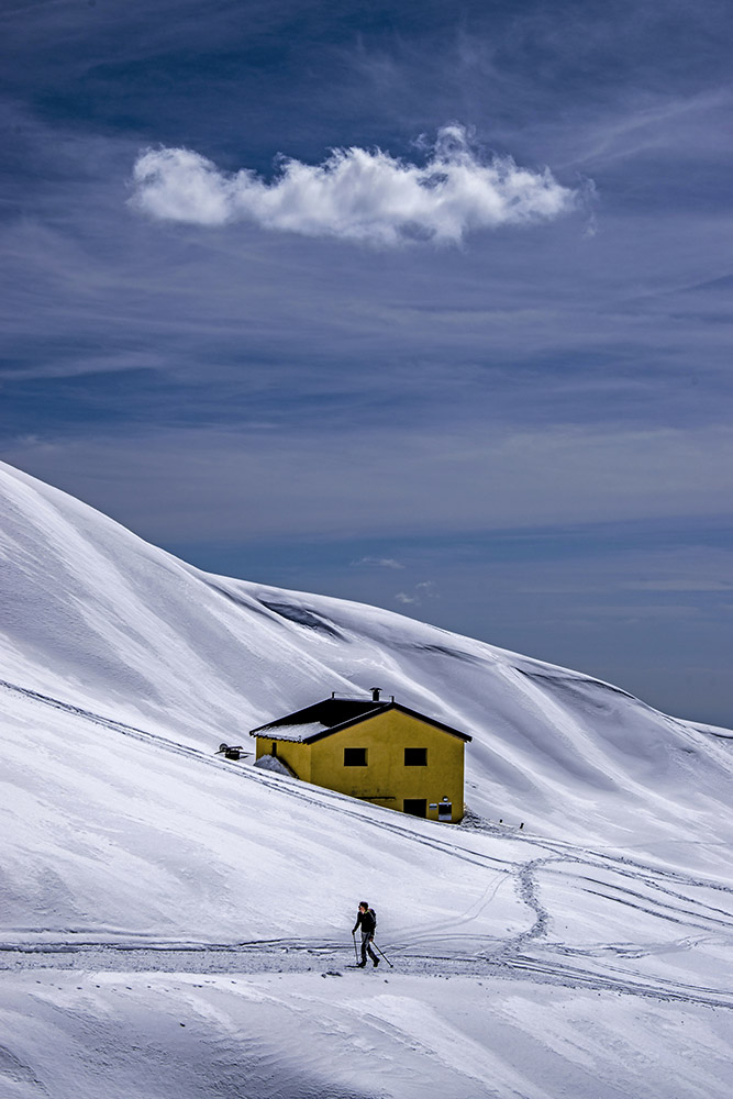 Gradevole il soggetto e apprezzabile la composizione centrale che allinea sciatore, rifugio e nuvoletta, nonostante trasgredisca la regola dei terzi (beh..? direte voi, giustamente... Very Happy).