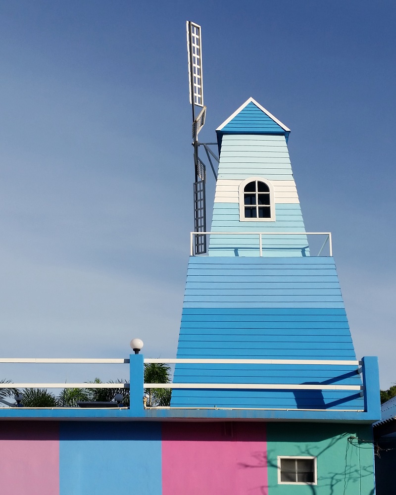 la composizione un filino piena per i miei gusti, avrei preferito un po' d'aria in più attorno al mulino a vento in particolare sopra sacrificando un fetta sotto. Colori molto belli