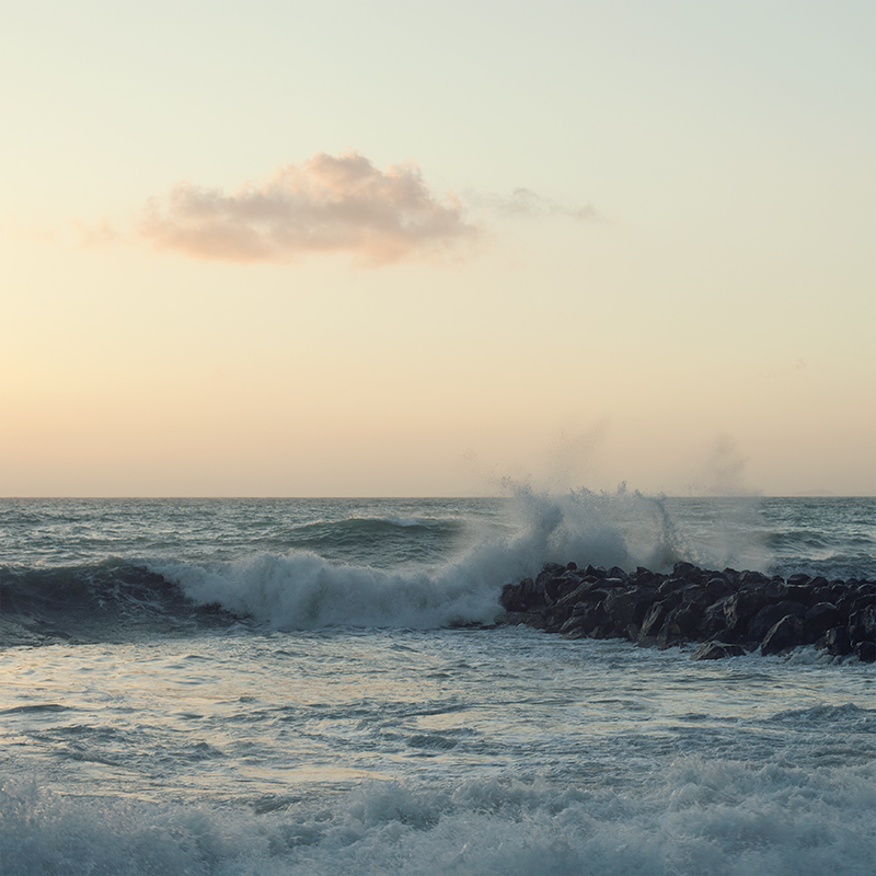tonalità tenui e delicate come la nuvoletta leggera che solca il cielo e gli spruzzi delle onde nel mare, molto bella