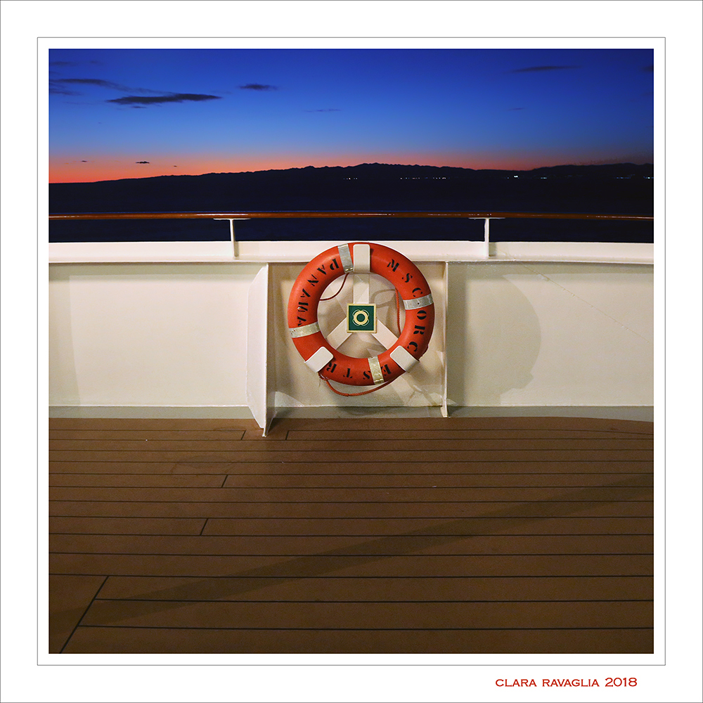Il sole al tramonto rappresentato dal salvagente... almeno io la vedo così. Immagine pulita con una bella luce e poi quadrato e cerchio vanno sempre d'accordo. Complimenti  |