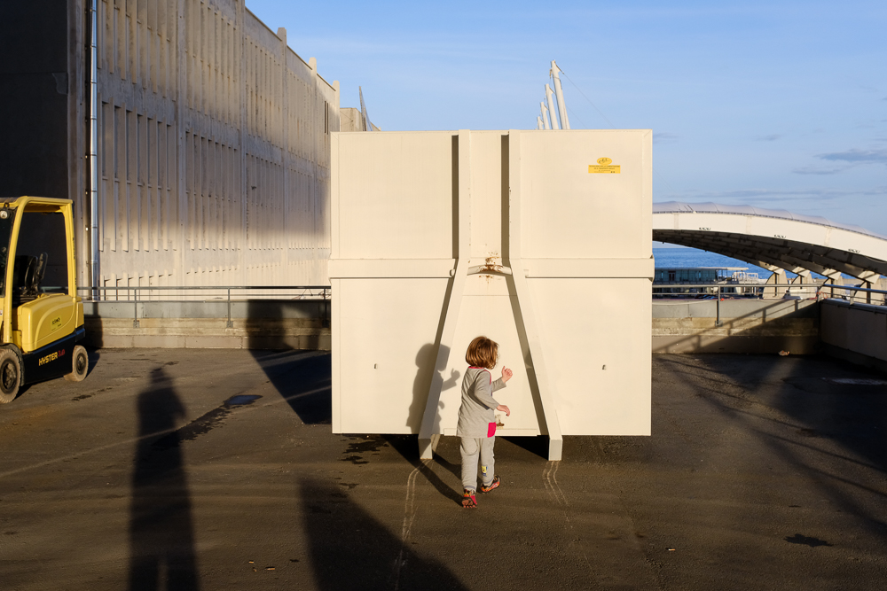 Intriga anche così, con il carrello e, in fin dei conti, sposa la tua ricerca di complessità. Certo che la purezza del quadrato, ricavato dal cassone con questo punto di ripresa a far da quinta all' ambigua figura, avrebbe sposato bene anche un' inquadratura più pulita della scena. Bella e determinante la luce che creando queste ombre ha reso surreale la presenza della pargola (?) che, devo dire, hai catturato in una posa che cade perfetta per lo scopo.