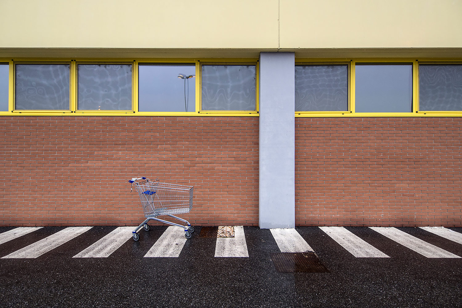 Buonasera Stefano, è una foto perfettamente nelle mie corde quindi mi piace . Ci sono gli elementi simmetrici e geometrie , il riflesso diverso nella finestra 'diversa' ed una nitidezza/ luce che trovo molto belle , oltre il carrello abbandonato ,naturalmente. Ma devo dirti che compositivamente qualcosa non mi convince. Hai dato precedenza alle striscie e ci stà ma le finestre appaiono penalizzate, rompono la simmetria, a meno che proprio questo non deriderassi. Con un passo a dx avresti potuto includere anche il montante giallo mancante. Taglio diverso? quadro?