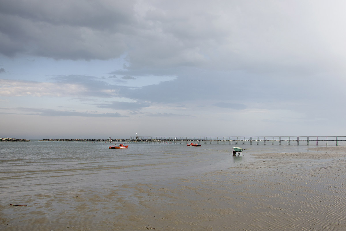 Qui c’è quel trio di minuscoli oggetti in un grande vuoto incerto. Un cielo così così sopra, e un mare sabbioso sotto. E come un cancello quel pontile tra i due. Questa incertezza, anche cromatica, questa sospensione, la trovo poetica. Toglierei solo quel rametto in basso a sx.  _________________ Alessandro Cucchiero 🐾 |