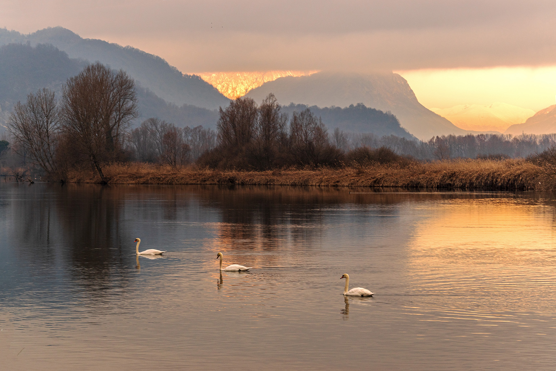 incantevole cigni formano una diagonale perfetta, colori ,luce top! Ciao
