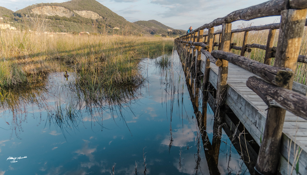 Bella la linea di fuga creata dal ponticello e il riflesso del cielo nell'acqua. Peccato che il monte di fronte leggermente pizzicato e forse la foto pende leggermente, ma nell'insieme questo scatto mi piace molto.