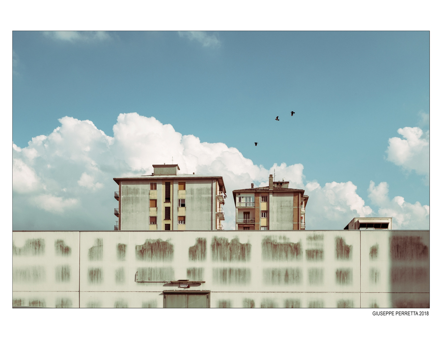 L'avrei vista bene anche senza il taglio del portone in basso, ma anche così ha un suo perché, andando a richiamare la cima del palazzo di destra che spunta, anch'essa tronca, da dietro il muro. Tinte molto belle, il volo degli uccelli è la ciliegina sulla torta.