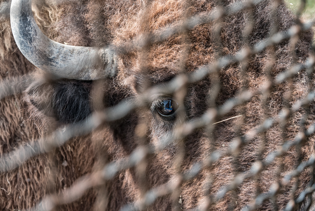 La foto purtroppo soffre della rete e del corno tagliato, troppo piccola per vedere la nitidezza dell'occhio, che comunque risulta troppo centrale, forse volevi mettere in relazione l'occhio triste con la gabbia, ma il risultato non e' all'altezza delle aspettative.