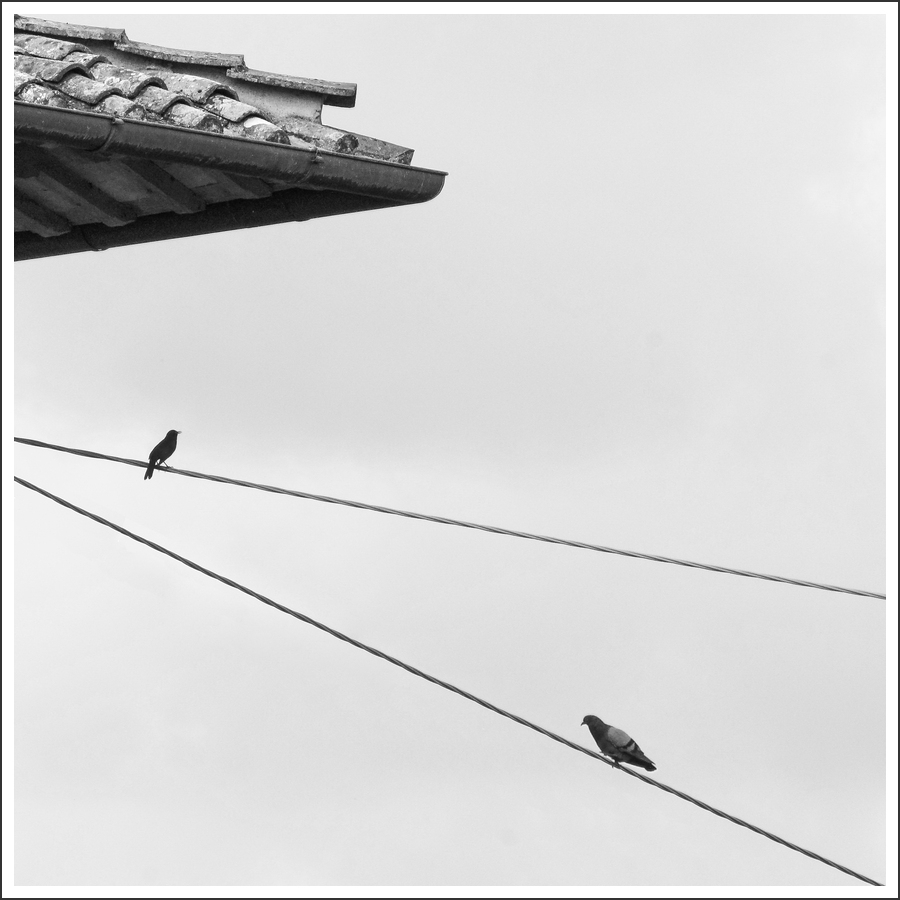 Il triangolo della porzione di tetto richiama quelli creati dai fili. Azzeccatissimo il taglio quadrato e la disposizione dei due piccioni nel frame. _________________ Giuseppe Zizzi |