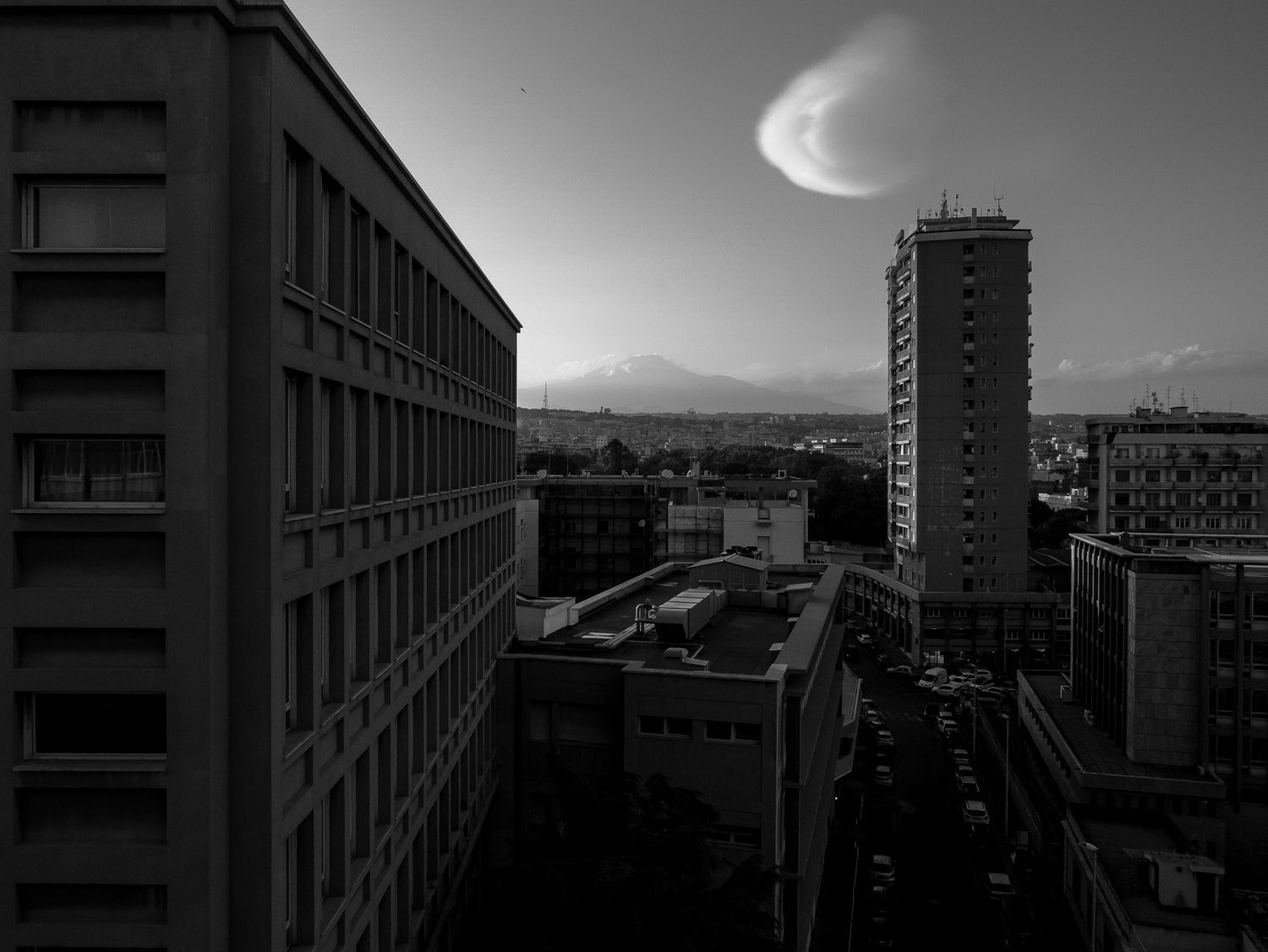 Un'urbanistica cupa su cui tutto poggia quel nuvolotto cicciotto e isolato.