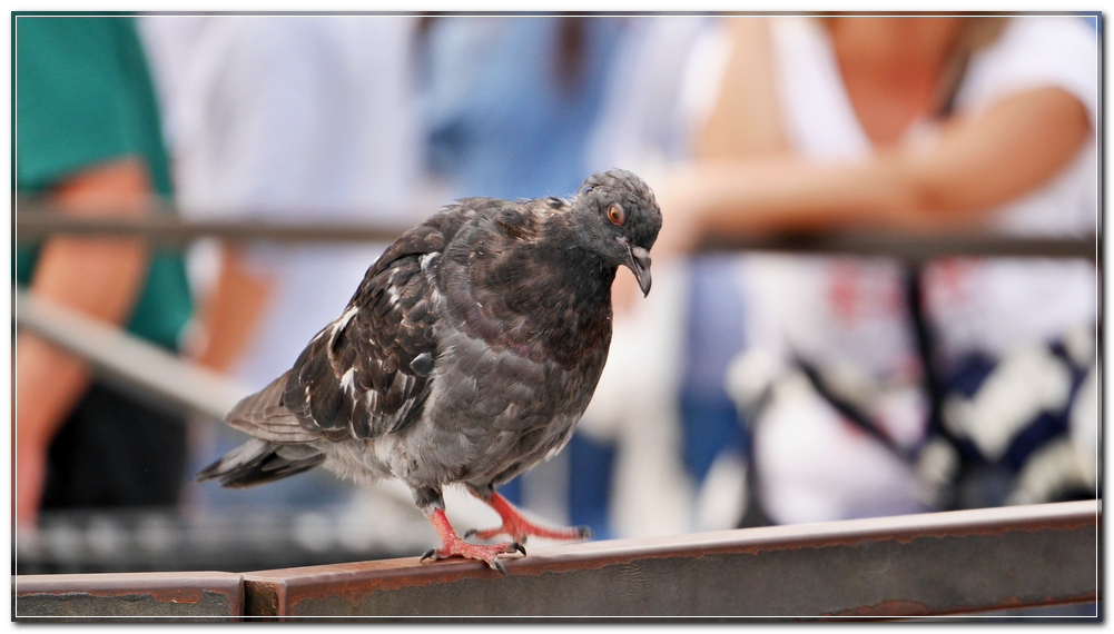 Ciao, mi pare che tu sia riuscito a creare un buon distacco del colombo dallo sfondo. Disturba un po' quella barra metallica diagonale, nonostante la sfocatura. Ciao  |