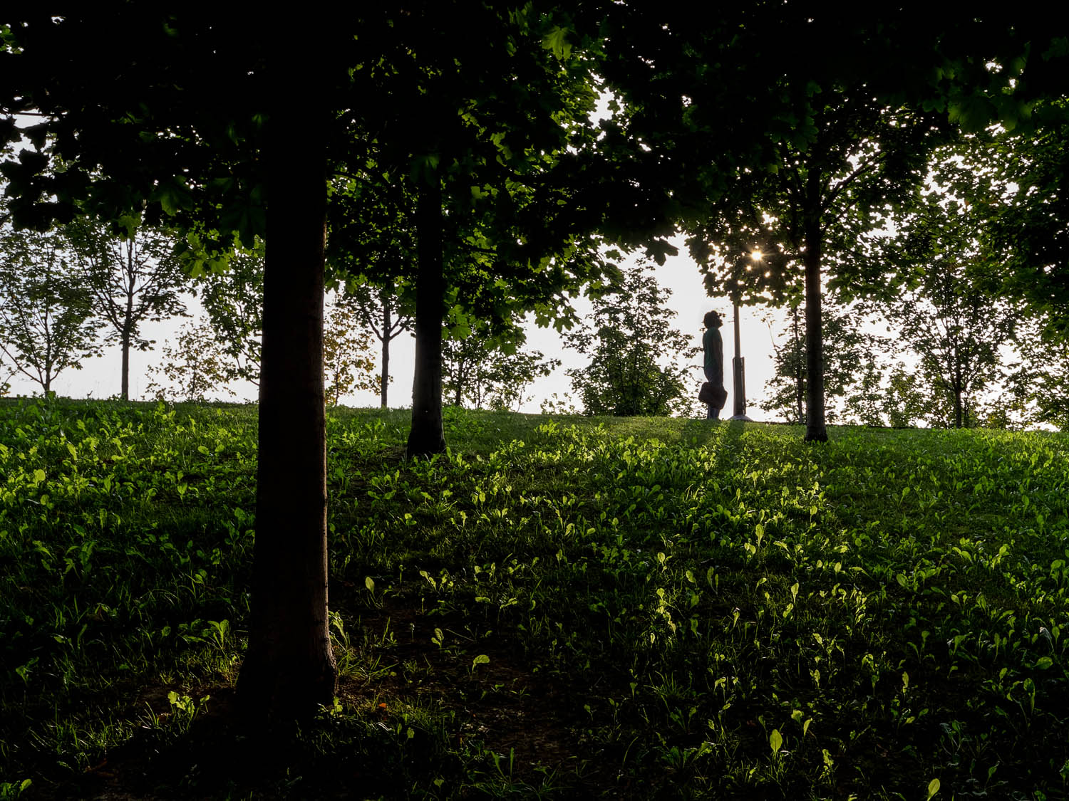 Curioso vederti alle prese con questa anarchia di fogliame, in cui fai ordine e riconduci ogni cosa all'uomo che, pur piccolo e defilato, come ogni presenza umana introdotta in qualsiasi immagine, attrae su di sé ogni attenzione.