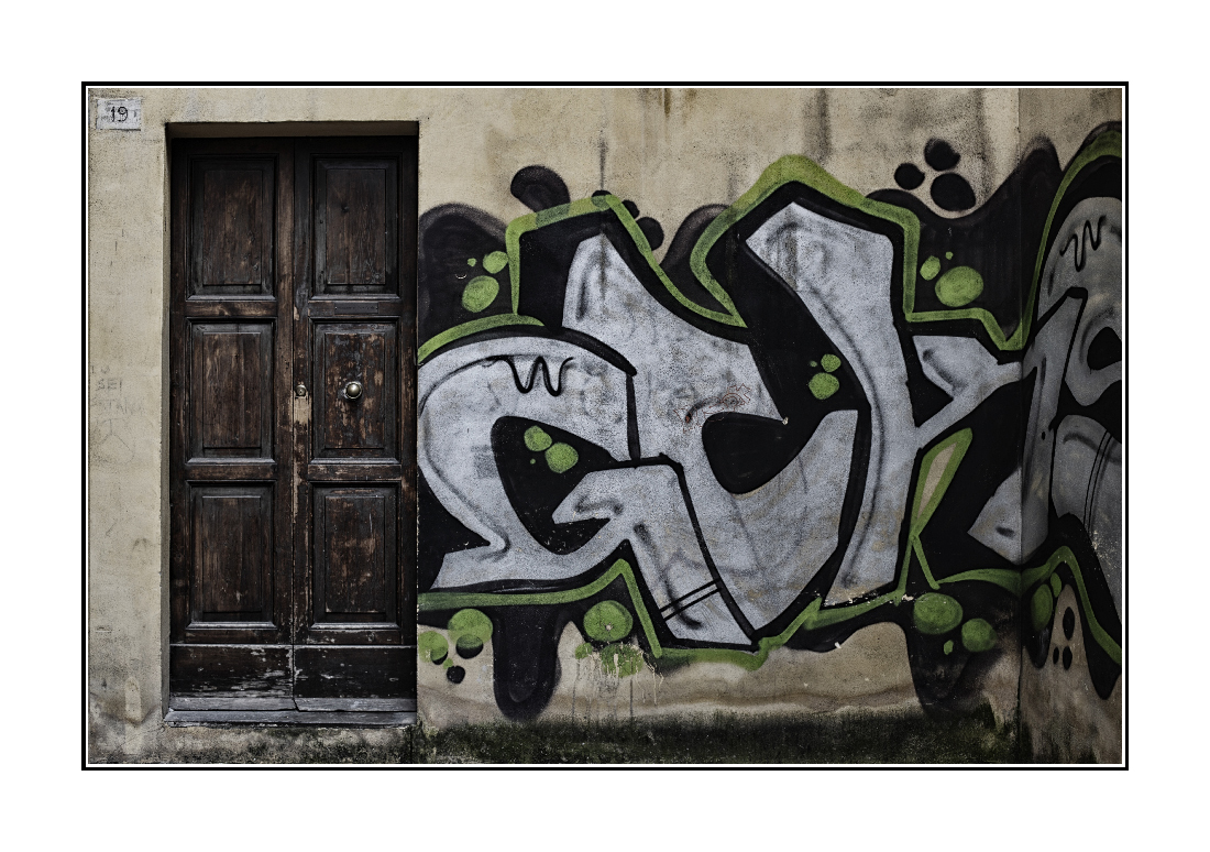 Bella Idea di riprendere il Murales vicino a questo portone.Piacevole composizione.