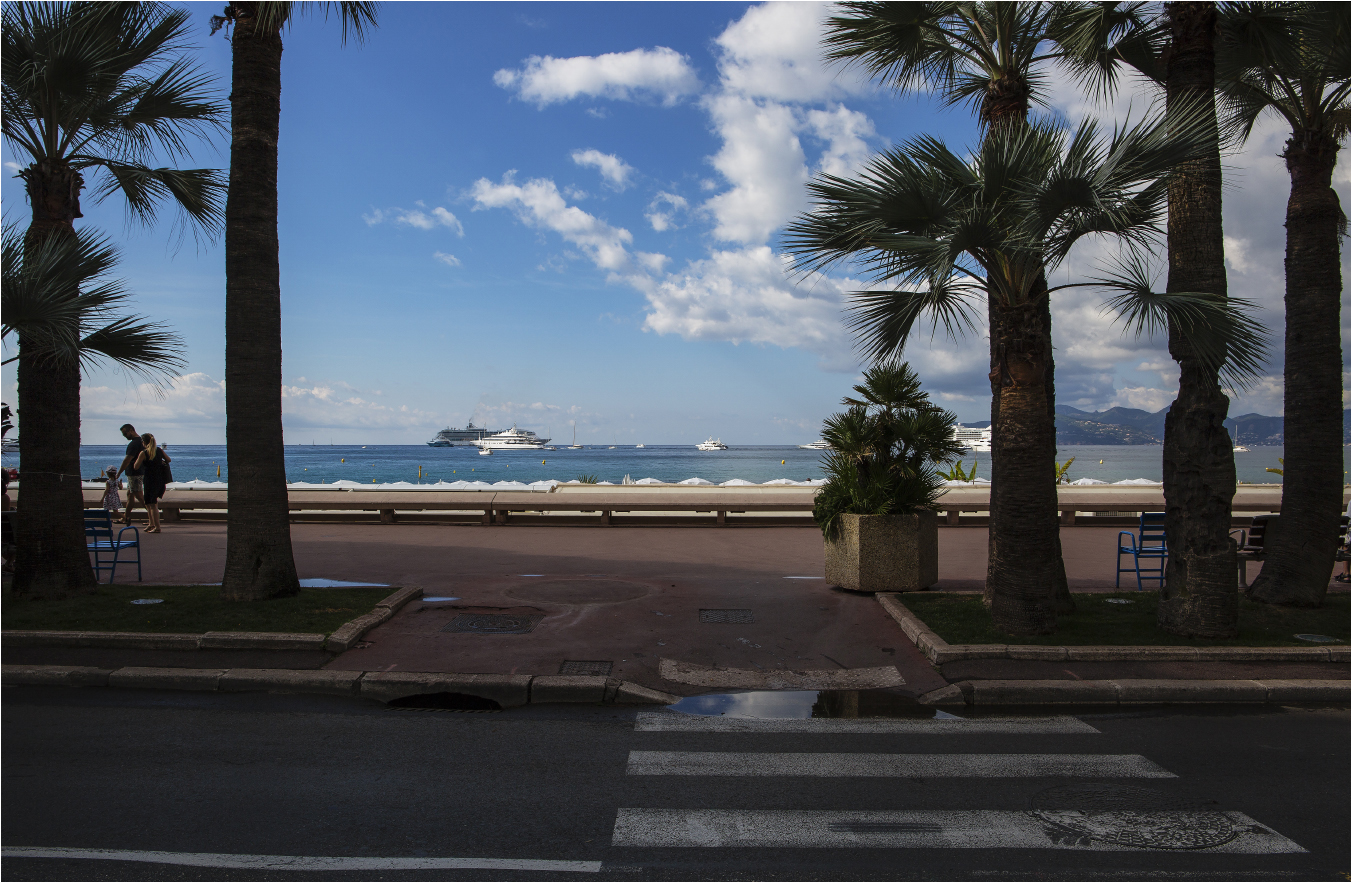 Belle queste palme come quinte che ci introducono al luminoso scenario di mare.Ottimi i colori e splendido il cielo con il suo piccolo riflesso nella pozzanghera.Complimenti! Ciao