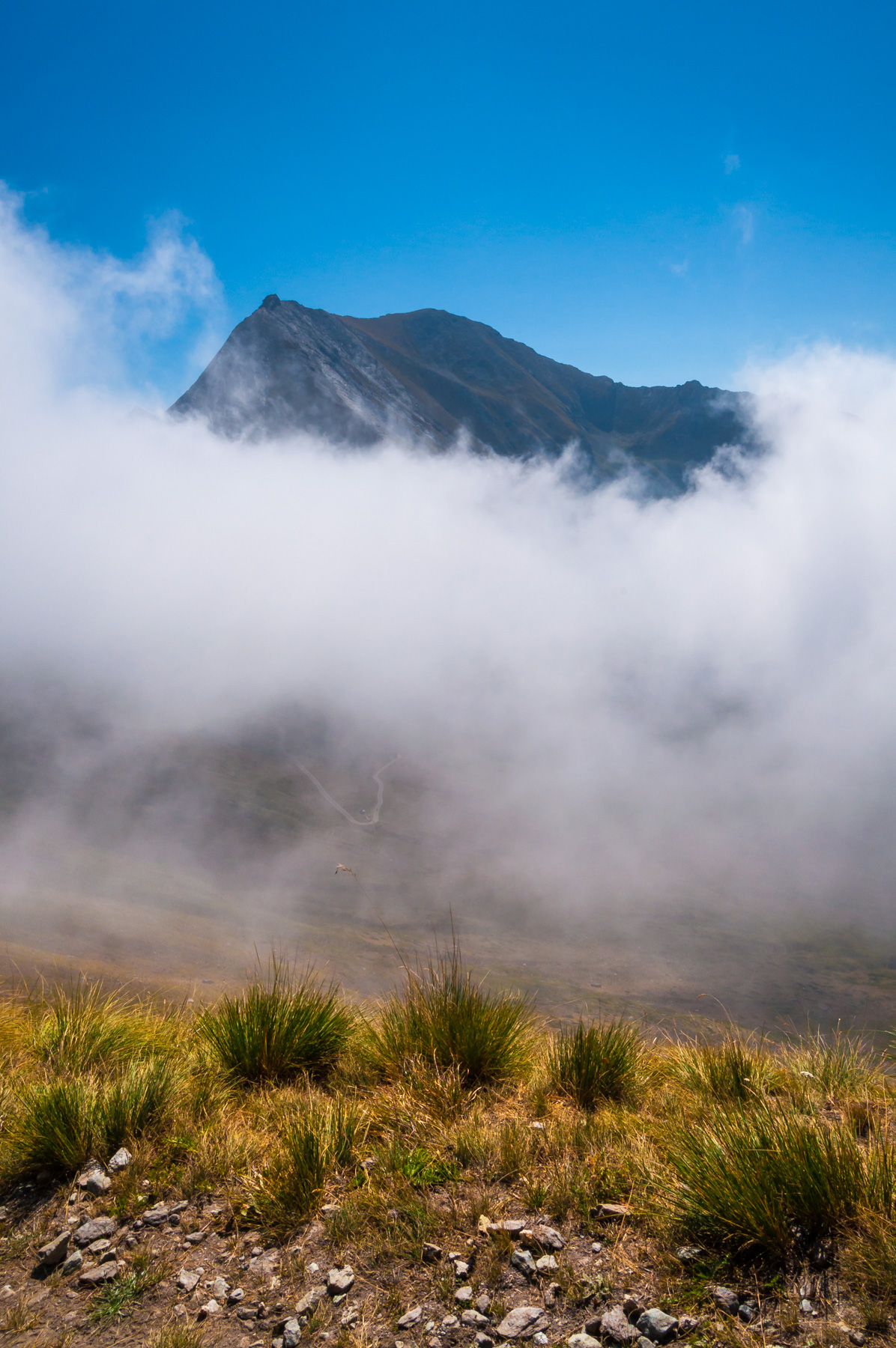 In realtà ho provato il taglio orizzontale ma ero su un sentiero abbastanza stretto e avrei dovuto scegliere tra la cima della montagna o il primo piano (non ero ancora esperto nel merge delle immagini), quindi evito di allegarle... L'unica cosa che si può notare dalle altre foto è la velocità di spostamento delle nuvole che nel giro di pochi secondi cambiavano competente forma e dimensione, anche coprendo la vetta. Volendo vedere mi è andata anche un po' di fortuna