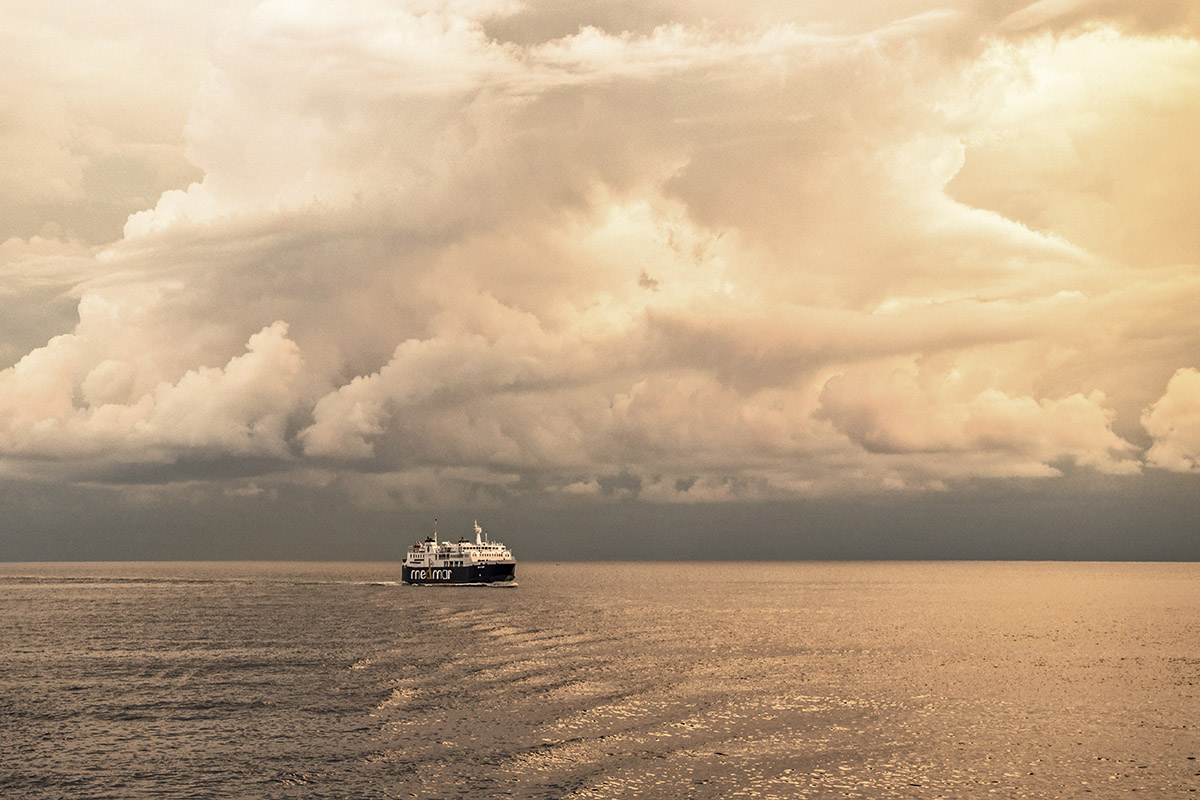 Nave solitaria..Piacevole il Cielo risplendendo colori Caldi.Bella composizione Elis. Ciao e buona giornata.