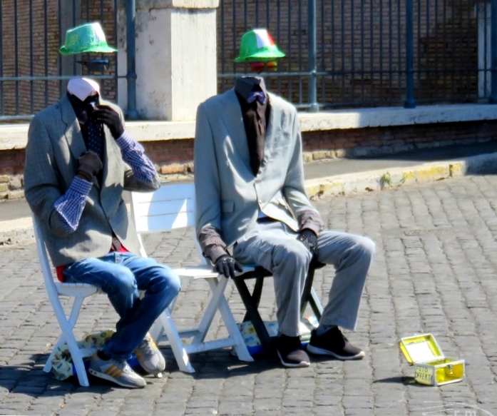Si, hai ragione una foto scattata di corsa ma quei due mi sono rimasti in mente , sotto il sole cocente, coperti fin sopra la testa da giacca, camicia e cravatta per guadagnare poche monete.