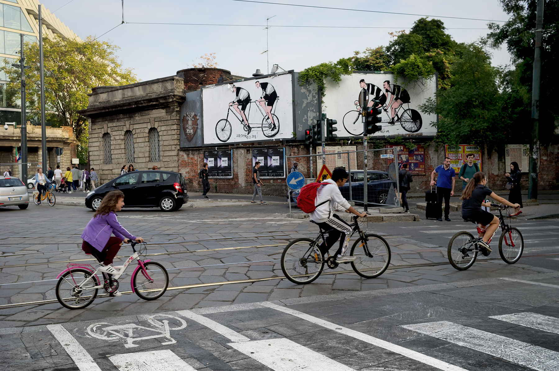 Campagna di sensibilizazione all'uso del velocipede. Emblematico e sensazionale scatto