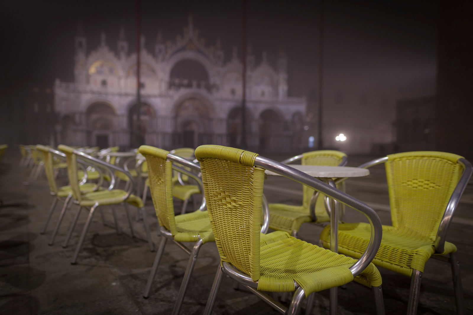 Non conosco la suggestione delle serate fredde milanesi (Bucis ti cito) ma la 'Chiesa d'Oro' è inconfondibile , una presenza silenziosa qui che il richiamo delle sedie gialle esalta. Un ottimo lavoro questo tuo Damiano, tutto e nessuna esclusa . La tua silenziosa presenza ci ha regalato un'aura piena di fascino della Serenissima . Complimenti anche per la meritata vetrina