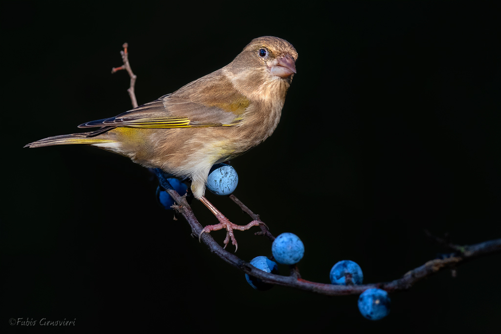 Nel nostro genere, lo sfondo così nero personalmente non mi entusiasma molto...detto ciò lei la trovo ben ripresa e nitida...da abbassare a mio avviso il blu, molto presente sul rametto, punta delle ali e occhio.