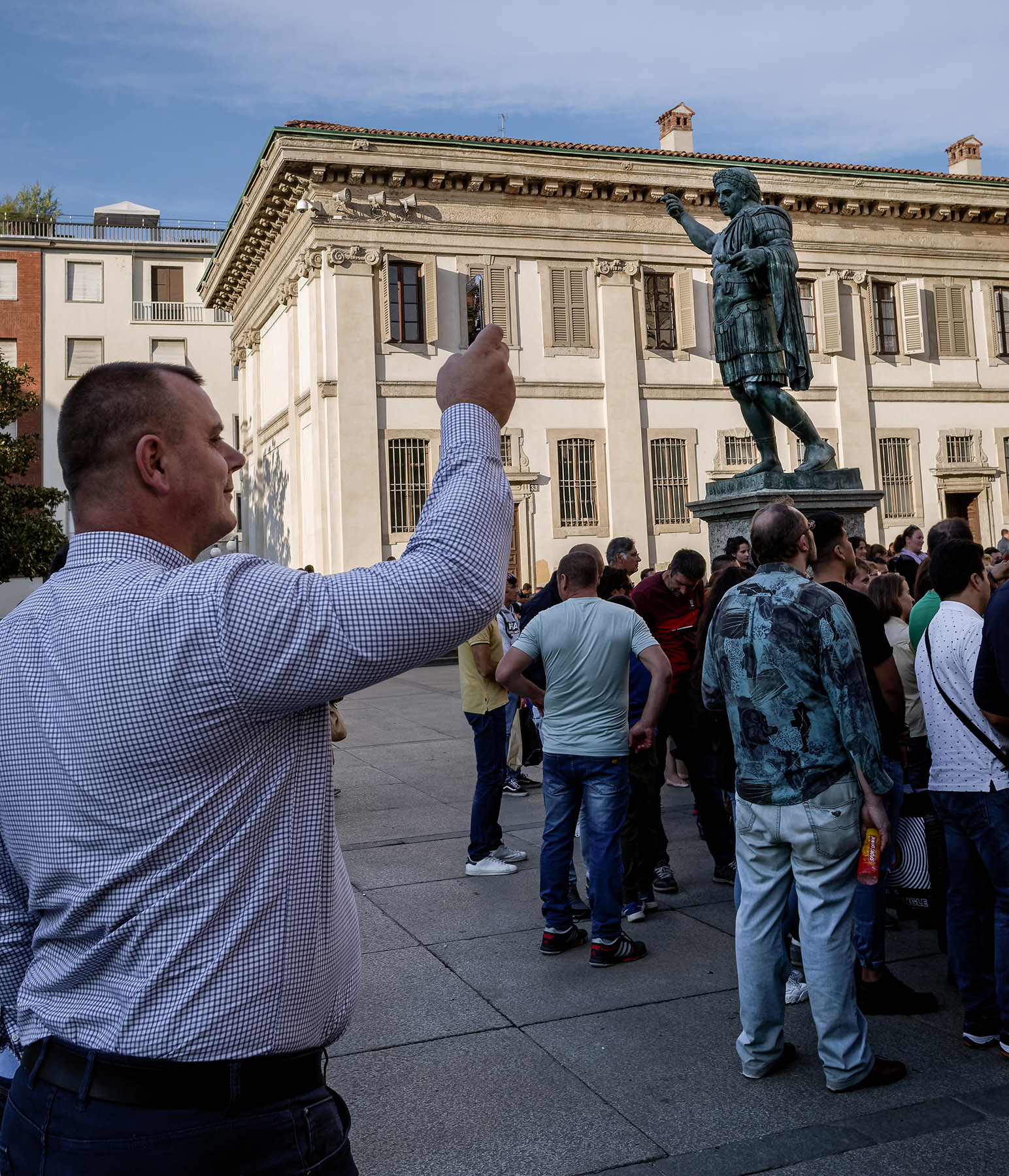 Motore dello scatto è sicuramente l'accoppiata tra la posa dell'uomo in pp e quello della statua.
