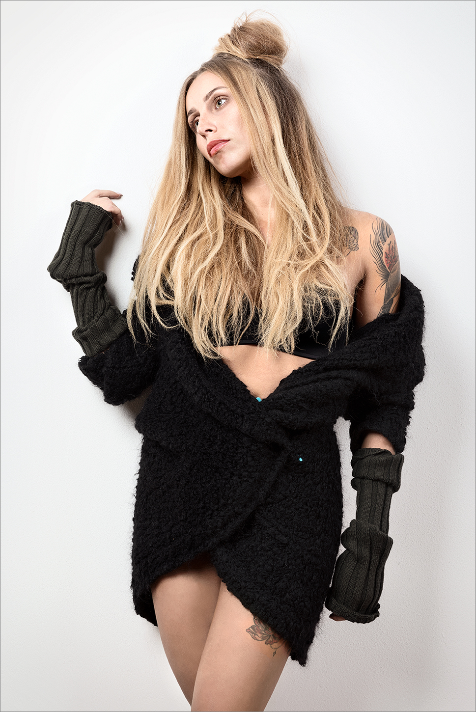 Posa aggraziata, la modella è naturale e disinvolta. Ci sa fare.