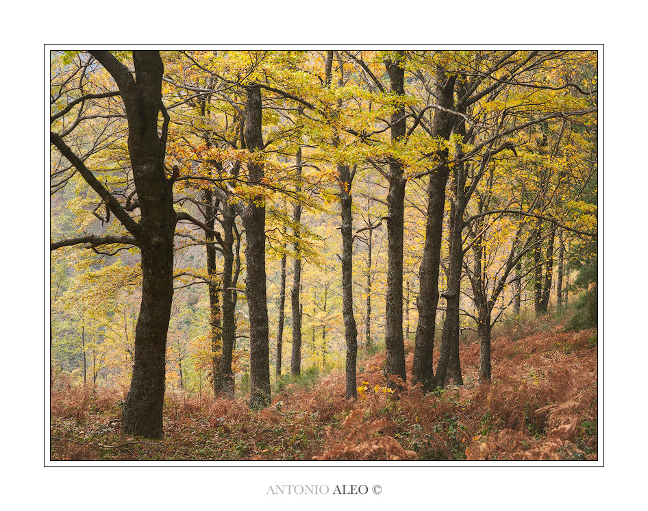 Trovo che sia molto efficace. Vi sono dei connotati che costruiscono l’immagine in modo molto efficace. I colori non gridati creano un’atmosfera rilassata e piacevole. Tronchi, tronchi, foglie…ma vi è un elemento che con le sue caratteristiche e grazie alla sua posizione rende lo scatto efficace ed “apre” la scena allo sguardo del fruitore, rendendo la fotografia, pur nel suo essere composta da elementi statici, pervasa da un certo dinamismo e senza piattezza. Si tratta di un elemento non diverso dagli altri che compongono la scena. Ma è diverso per tono, posizione e presenza scenica. Mi riferisco al tronco dell’albero in primo piano e più scuro a sinistra. Esso apre lo sguardo verso tutto quanto vi è sulla destra e funge da “elemento guida”. uguale agli altri ma visivamente diverso. Più evidente ma non troppo, tale da essere un elemento dell’insieme ma con quel che basta per introdurre il resto della scena quasi come un apripista o un narratore.