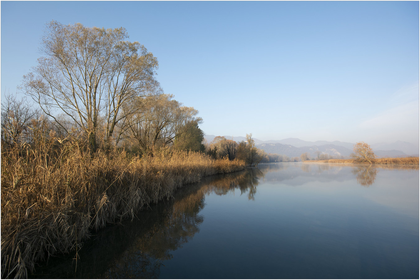 Un'immagine che sussurra, racconta di quiete, silenzi. Pulita e rarefatta. Tutto sa di immobilità e sospensione. Questa "freccia" di vegetazione bruna ci conduce in profondità,ci guida alla scoperta del luogo, lungo il fiume, sino a mostrarci in lontananza i monti. I riflessi son un tocco prezioso.Insomma,mi piace molto  _________________