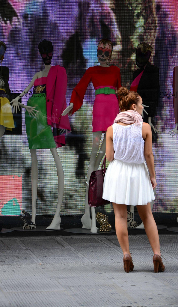 Hai ragione per il titolo...io c'ero e ho visto la scena...per parecchio tempo la ragazza si stava specchiando,e al momento dello scatto ha girato la testa ,però ho visto un certo collegamento nella postura della ragazza e dei manichini.....troppo fantasia?forse si !! |