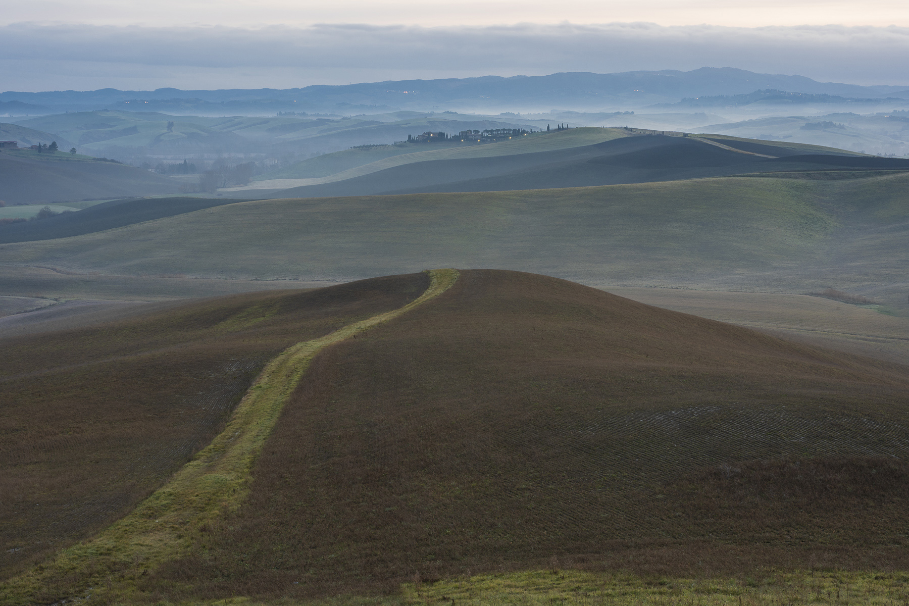Ottimo l inserimento di questo sentiero che ci porta su, seguendo la linea sinuosa dei profili della collina, e da li su ci si ferma ad osservare tutto il resto..sottili cumuli di foschia che lenti abbracciano le colline lontane, piani che si susseguono morbidi e affascinanti e tanti piccoli punti di luce che guizzano qua e la a dare un tocco di vita in questo scorcio che sembra dormire silenzioso.. bella  _________________