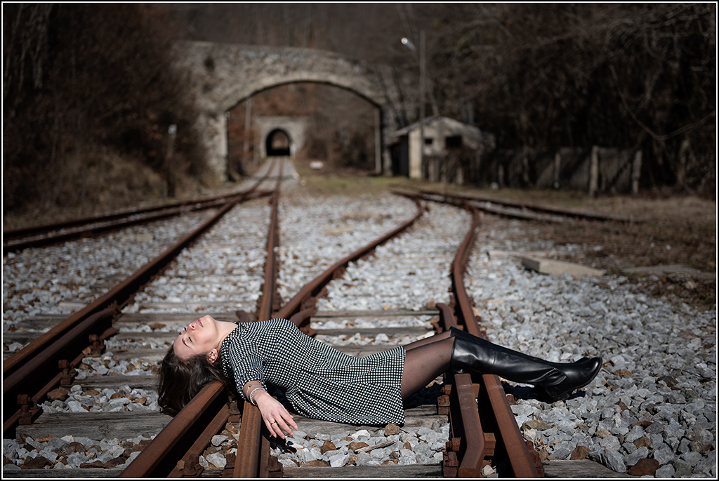 L'illuminazione invece non mi convince: la trovo poco coerente nella differenza di luminosità tra ghiaia/binari e incarnato della modella. Soprattutto sul lato sinistro del frame, dove forse un ulteriore effetto vignettatura enfatizza la cosa...