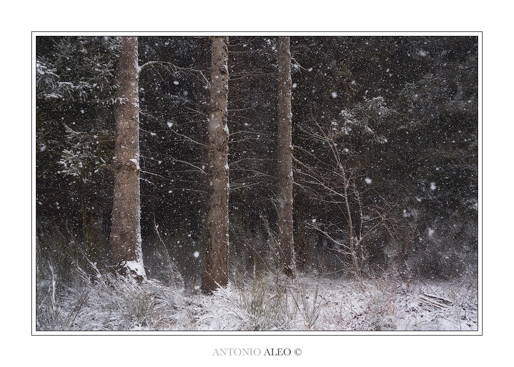 Il piccolino che coraggioso segue imperterrito l'invincibile esercito che lo precede, nel bel mezzo di una bufera, senza cedere, senza perdere fierezza e forza. Un angolo di bosco impregnato di magia, come sempre sono i tuoi. Bravo  _________________