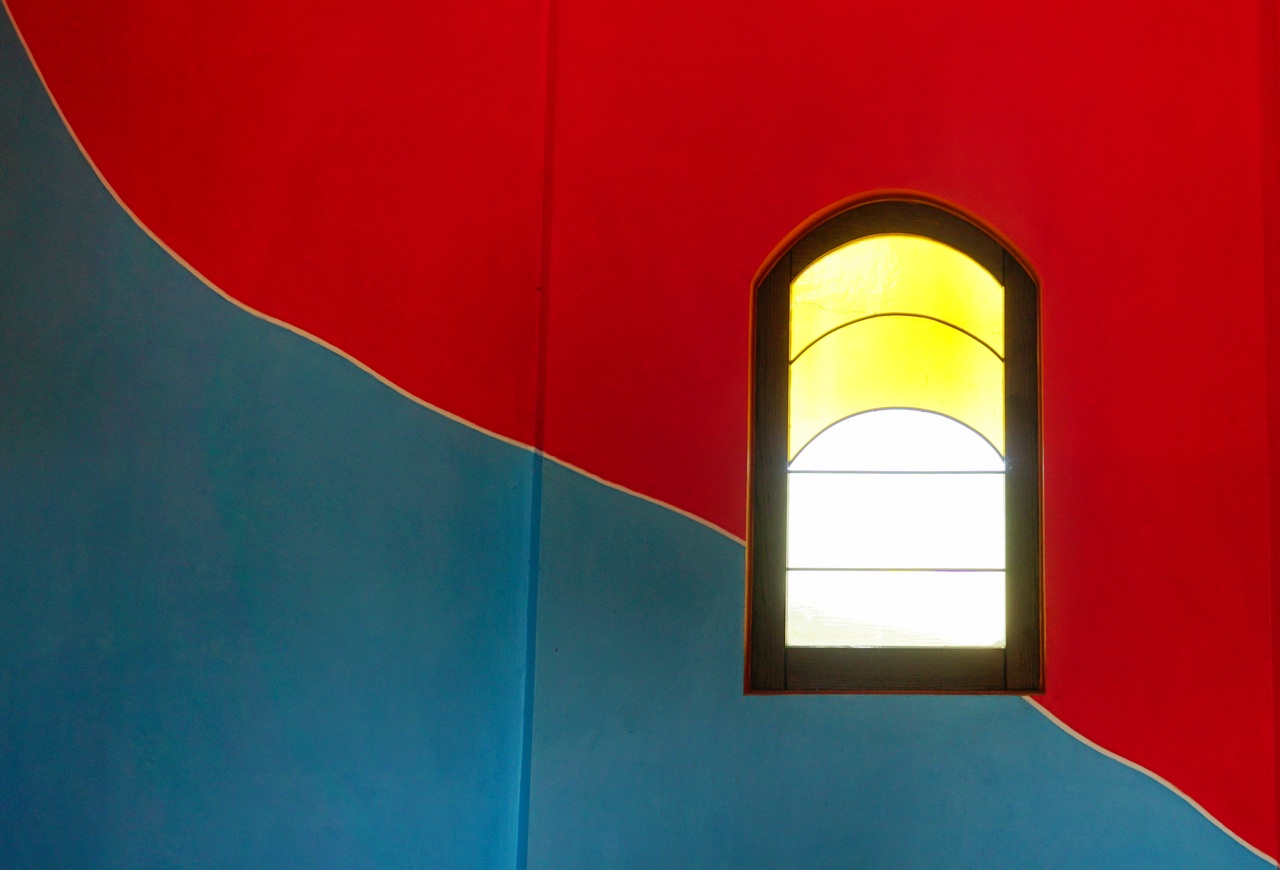 Molto buona la composizione, molto dinamica e ben studiata, con le linee che iniziano e finiscono negli spigoli. Ottimo il contrasto cromatico.