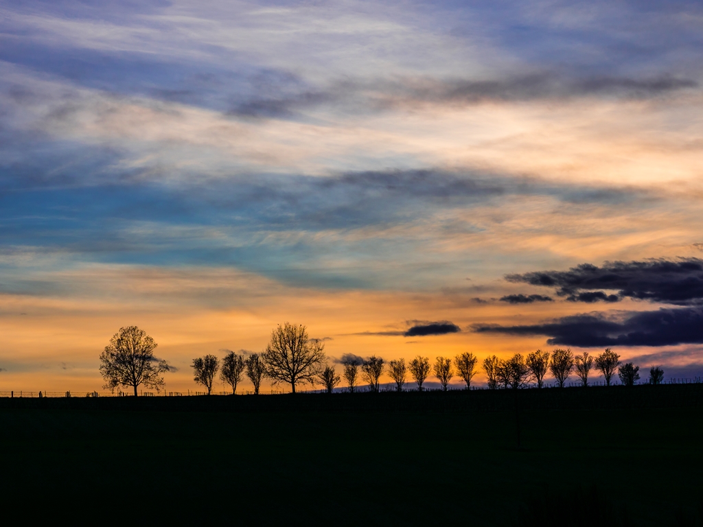 è piacevole vedere tutti questi alberi in fila,a parte la parte bassa che si vede troppo nero..mi chiedo se è stato usato dei filtri..perchè i colori del cielo sono un pò particolari..detto questo la resa cromatica mi piace..
