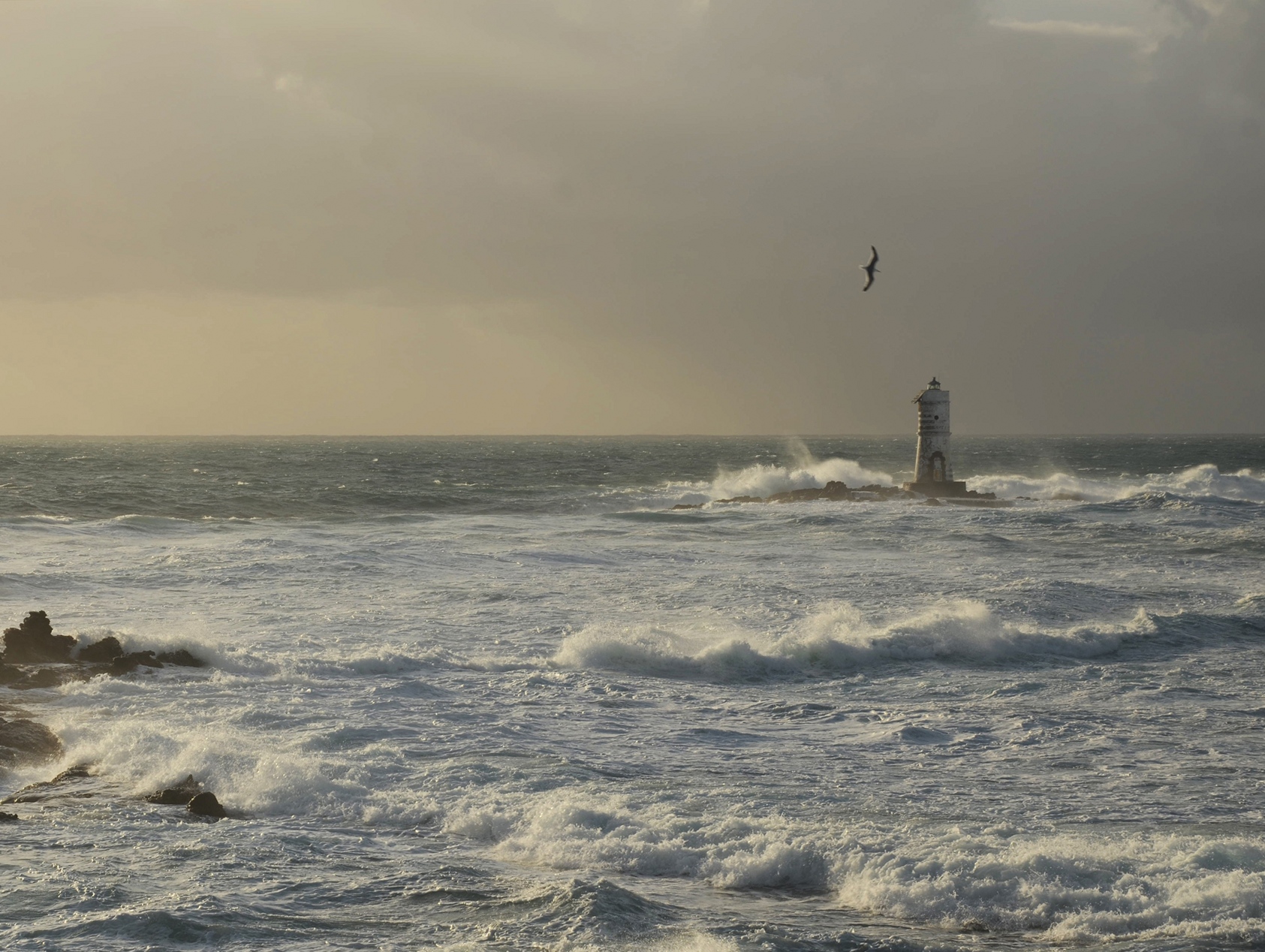 Il piccolo faro in lontananza sfida l'impeto del mare. Il volo del gabbiano completa questa meravigliosa proposta