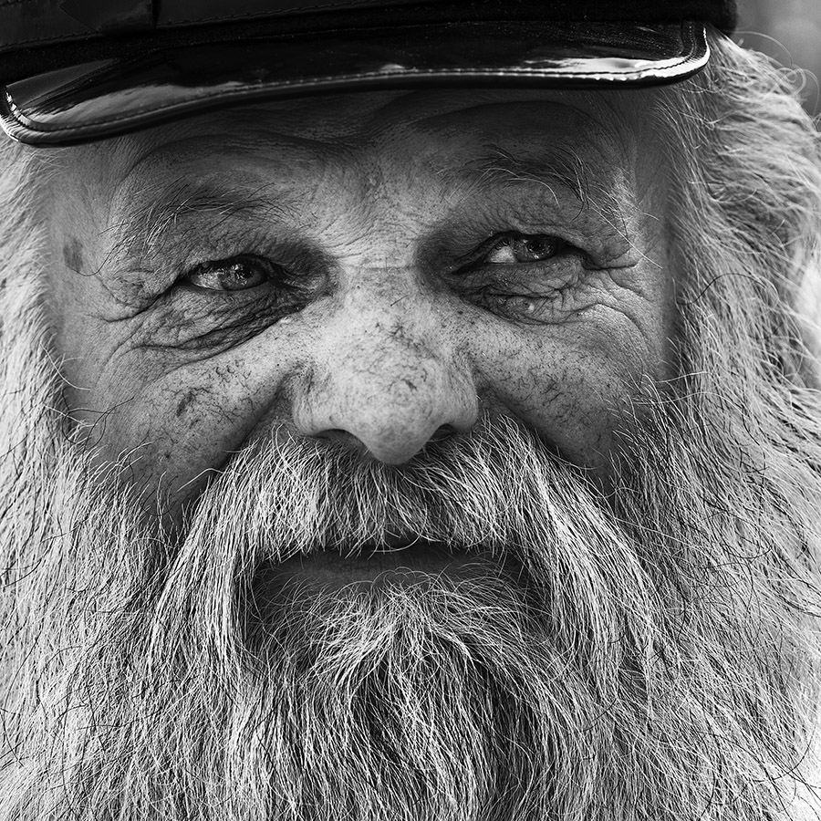 Un bellissimo viso... che ha tanto tanto da raccontare, ricco,espressivo, con due occhi che brillano. Un ritratto che colpisce, spero tu abbia avuto occasione di scattargli più di una foto. Son d'accordo con Gian,il taglio non convince nemmeno me, con questo viso così pieno,questa foltissima barba..mi sarebbe piaciuto vedere più aria intorno.