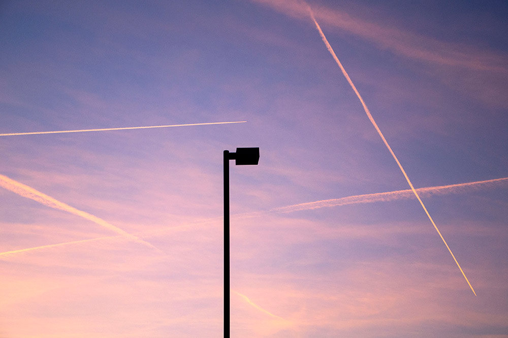 Molto piacevoli i colori del cielo ed le sue strisce lasciate dal passaggio dell'aerei.. Ok!