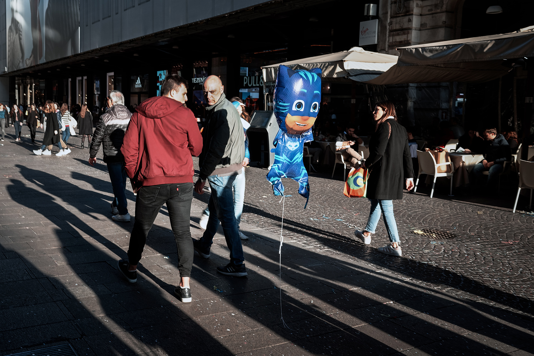 Simpatico il palloncino felino "autoreggente" ed ottimo il voltarsi dei due uomini a scrutare curiosi.Bella anche la composizione con le ombre lunghe che si sviluppano sulla diagonale.  _________________ Sergio Demitri https://www.flickr.com/photos/124946035@N02/ |