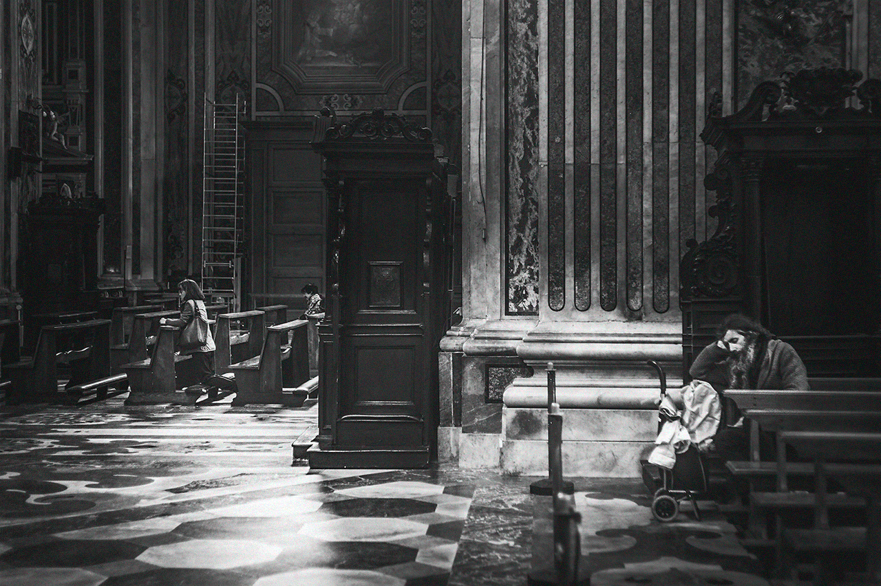 anch'io trovo che sia un'ottima immagine, la posa e l'espressione sconsolata del signore seduto vicino al confessionale trasmettono tanta tristezza.