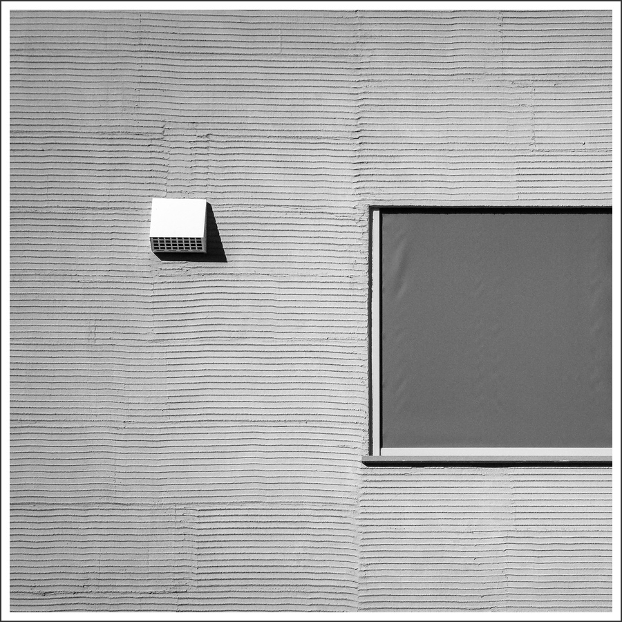 In origine la finestra era tutta intera, ma faceva abbastanza catalogo di ferramenta. Si individuavano subito i due oggetti (finestra e areatore) e la cosa finiva lì, non era né carne né pesce. A me piaceva la superficie striata (ognuno ha i suoi gusti ). Tagliando la finestra la si riduce quasi a un anonimo campo grigio, così il resto viene avanti. Almeno dovrebbe…