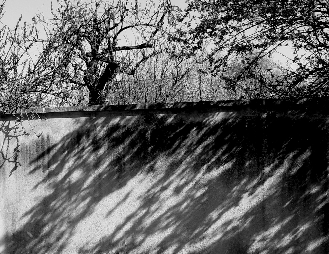 Mi piace, Filippo, questo muro che al contempo esclude la vista e propone un'altra visione di alberi.