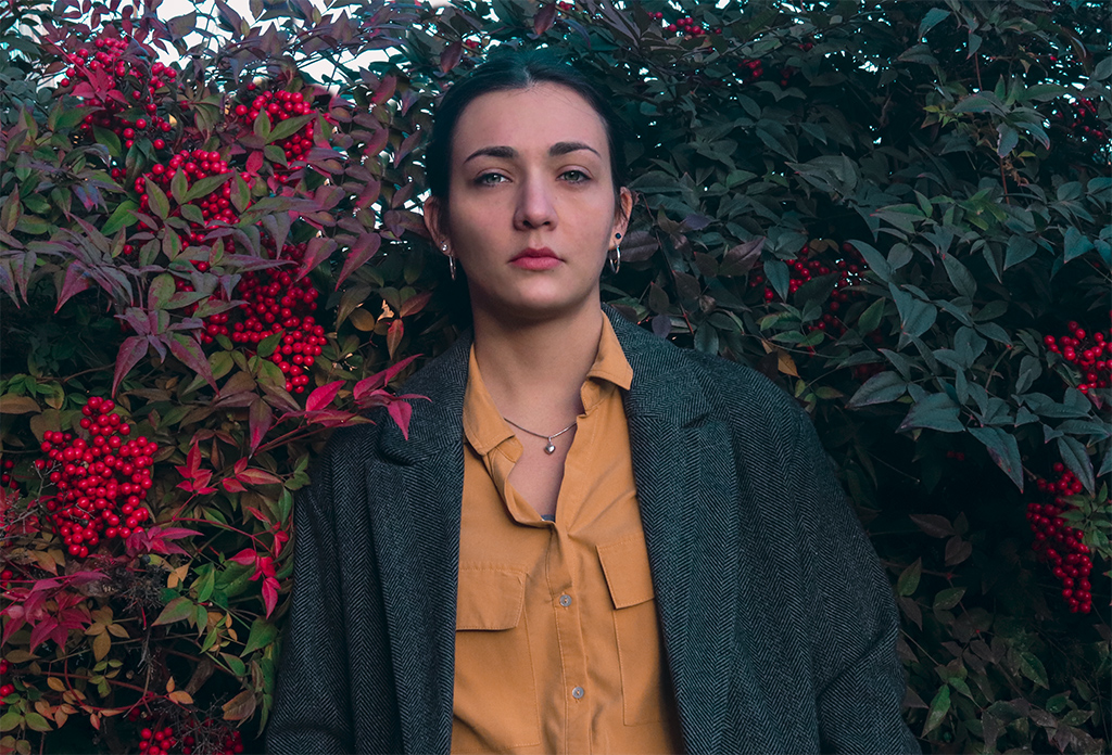 Tra le cose che mi piacciono: la palette dei colori, l’espressione dura della ragazza e i rimandi labbra/bacche giacca/foglie.
