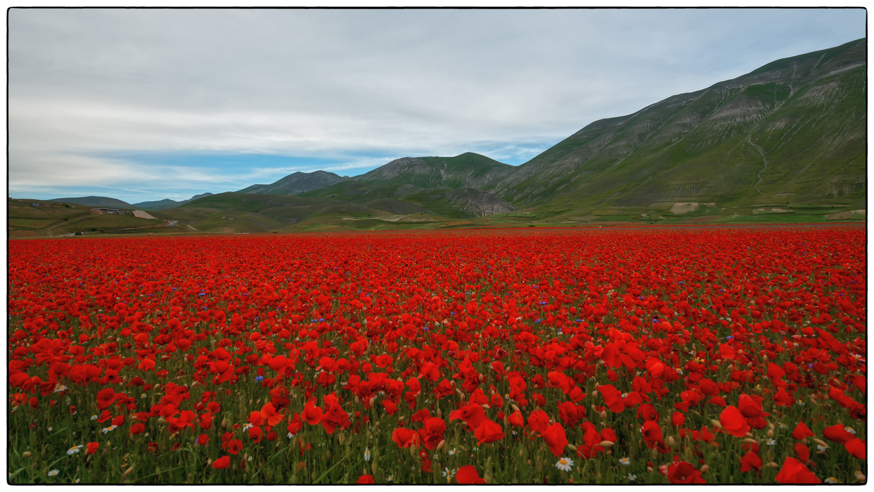 Che meraviglia questo mare scarlatto ...Un bellissimo quadro di un luogo che nel mio immaginario,e grazie alle testimonianze di chi lo ha visitato, ho sempre visto da togliere il fiato. Ottimo il modo in cui hai riempito il frame, con morbidezza , colore, tanto tanto equilibrio.Ci si tuffa in mezzo alla morbidezza dei petali,si scalano i sinuosi pendii delle colline,per arrivare sino al delicatissimo cielo. Molto piacevole Mauro ,complimenti  _________________