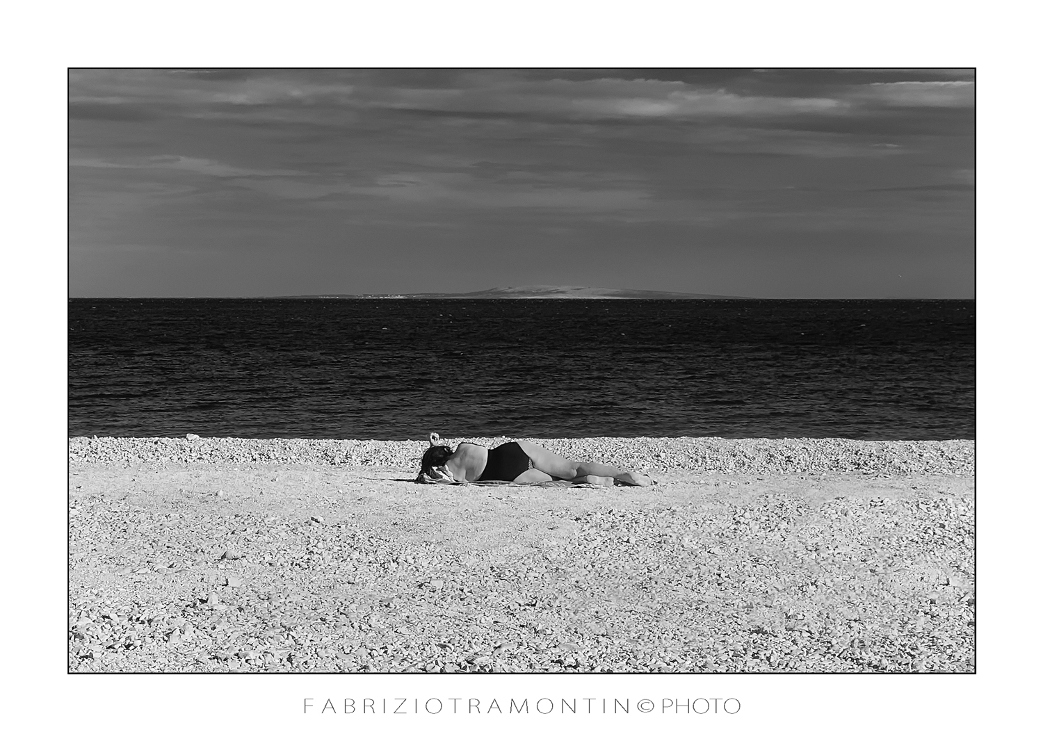 Le diverse tonalità di grigio dividono nettamente il fotogramma e la posizione della figura umana è correttamente inserita nella fascia inferiore e ben contrastata sullo sfondo.