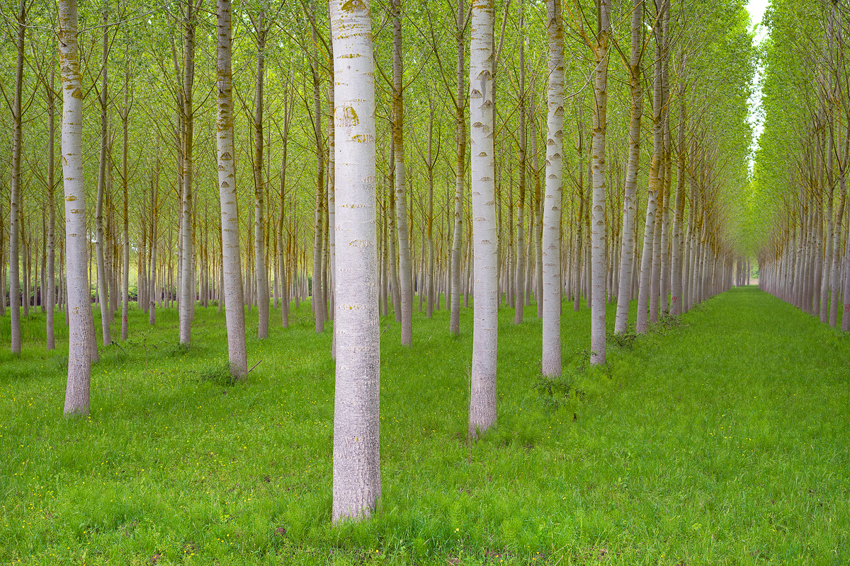 Una pp brillante, che mette in risalto questi pioppi ordinati e profondi.