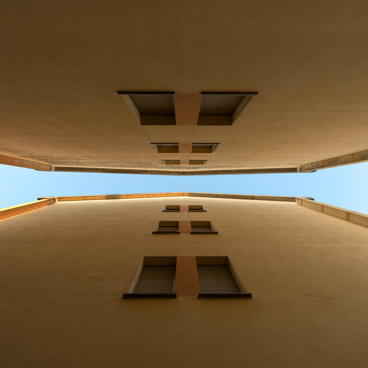 Il colore degli edifici in contrasto con il cielo completa l'equilibrio dell'immagine.